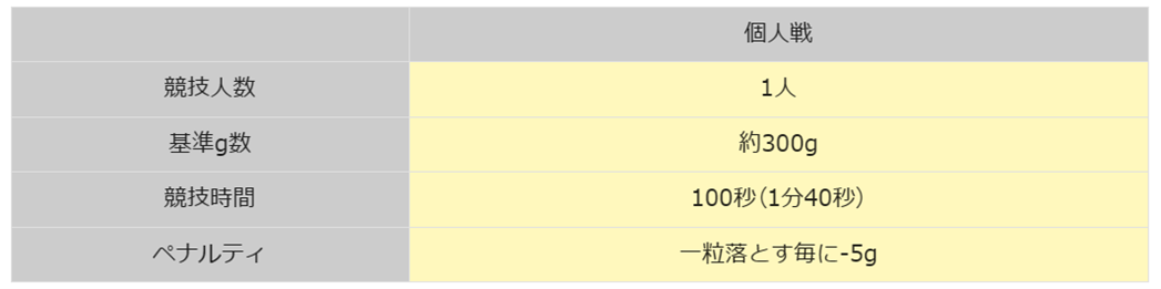※基準g数は公正を期すため競技開始前に皿に盛られた枝豆を 1g単位で計測し、その値を基準値とします。