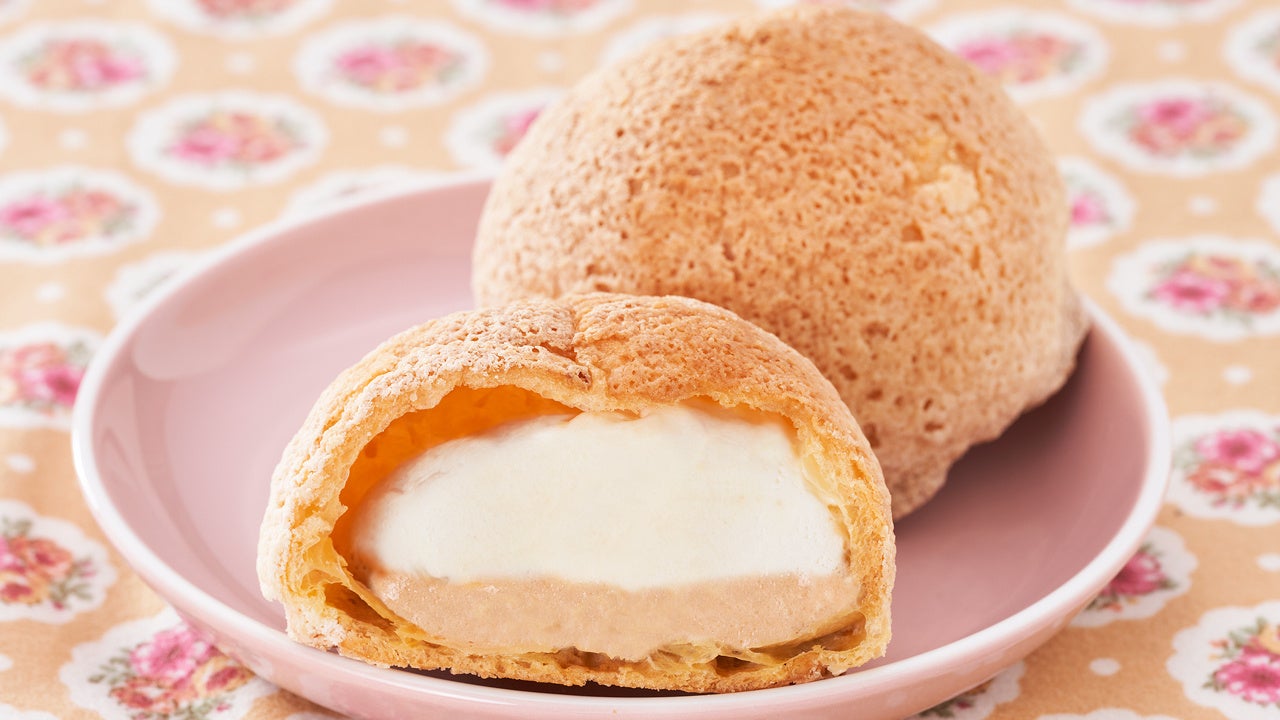シュー生地の上にクッキー生地をのせて焼き上げることで、ザクザクとした食感に仕上げました。中には、香ばしさが特徴のアーモンドクリームとホイップクリームの2種のクリームが入っています。なめらかなクリームとザクザクとしたクッキー生地の食感のコントラストを楽しめるシュークリームです。