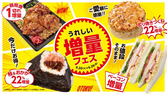 ●日頃のご愛顧に感謝し、6月20日(火)から6月26日(月)までの期間限定で、対象商品全11品を22周年にちなみ、22%(※従来比)増量します。(※従来比…当社で通常時に販売している同商品との比較)お値段そのまま!今だけお得!なNewDaysにぜひご来店ください!