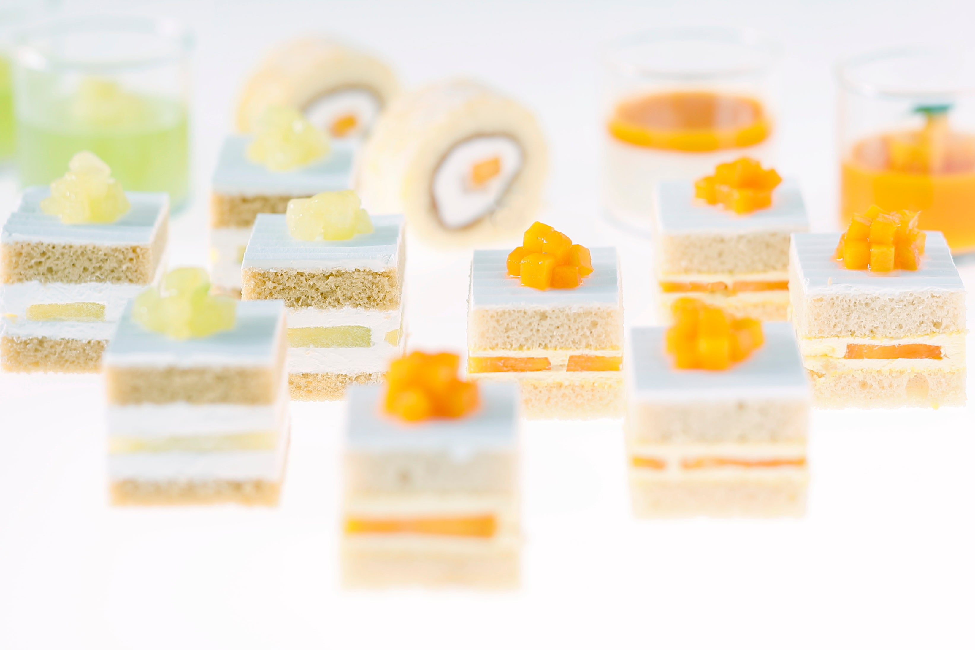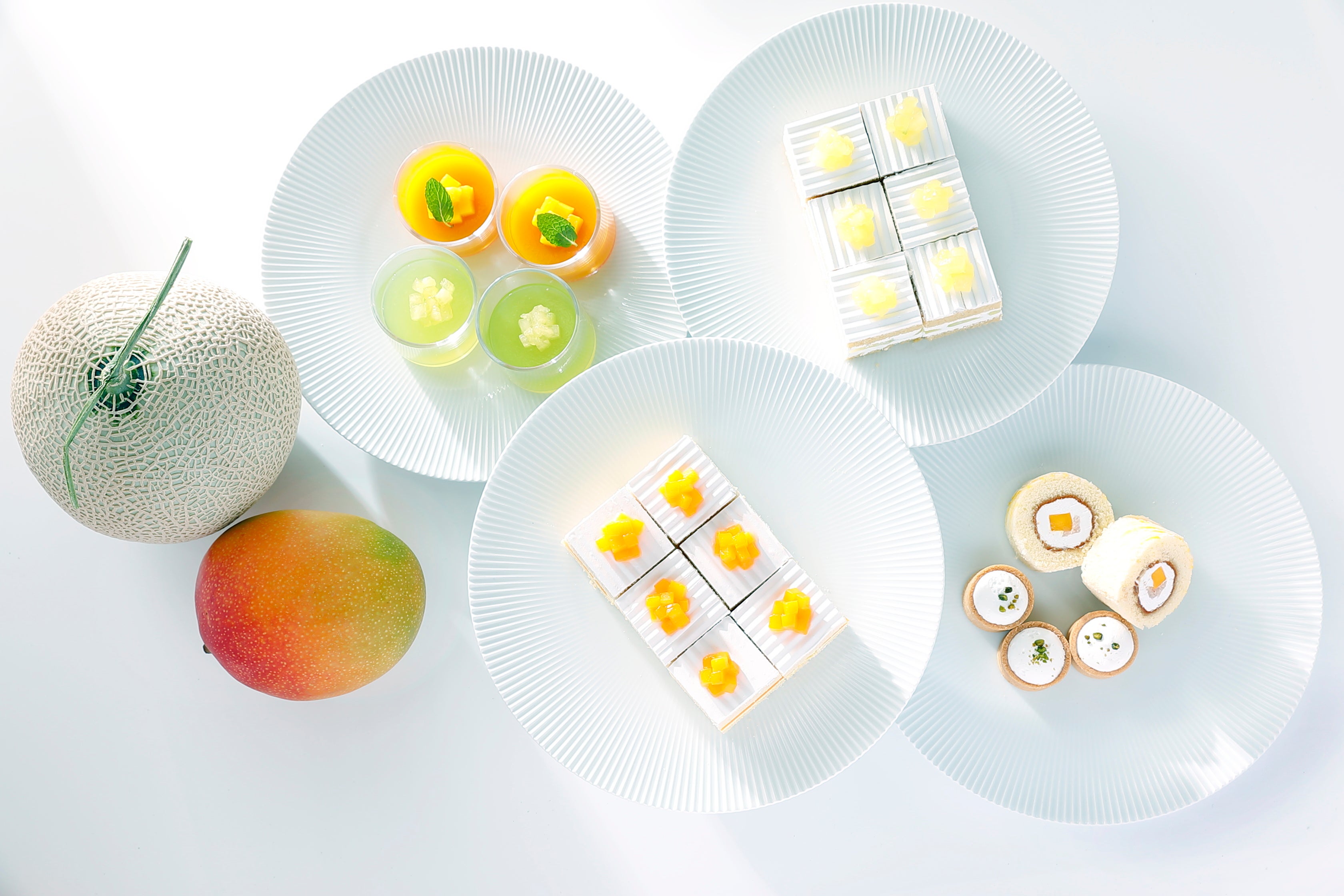 糖度14度以上の極上マスクメロンを使用したメディアでも話題の「スーパーメロンショートケーキ」に、完熟マンゴーをふんだんにあしらった「マンゴーショートケーキ」、「マンゴーゼリー」や「ピュアメロンゼリー」など見た目もさわやかなグラススイーツもビュッフェ台を彩ります。さらに、ピーチを使用した、「ピーチロール」や「ピーチタルト」も新たに加わったスイーツの贅沢なラインナップを心ゆくまでご堪能いただけるチャンスをお見逃しなく!