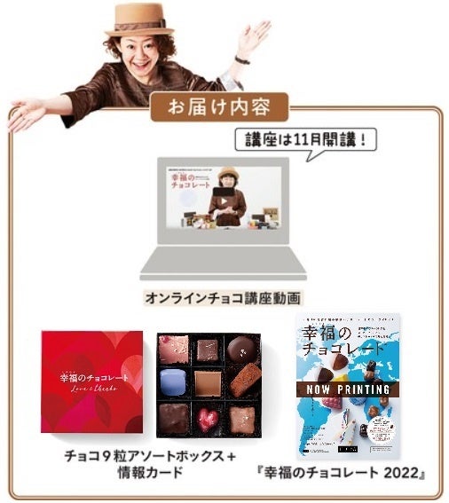 「試食チョコ」と一緒に届く『幸福(しあわせ)のチョコレート2024』カタログを見ながら、オンラインで「幸福(しあわせ)のチョコレート講座(11月下旬日配信予定)」を視聴して楽しむことができます。バレンタインのチョコ選びが一層楽しくなります。