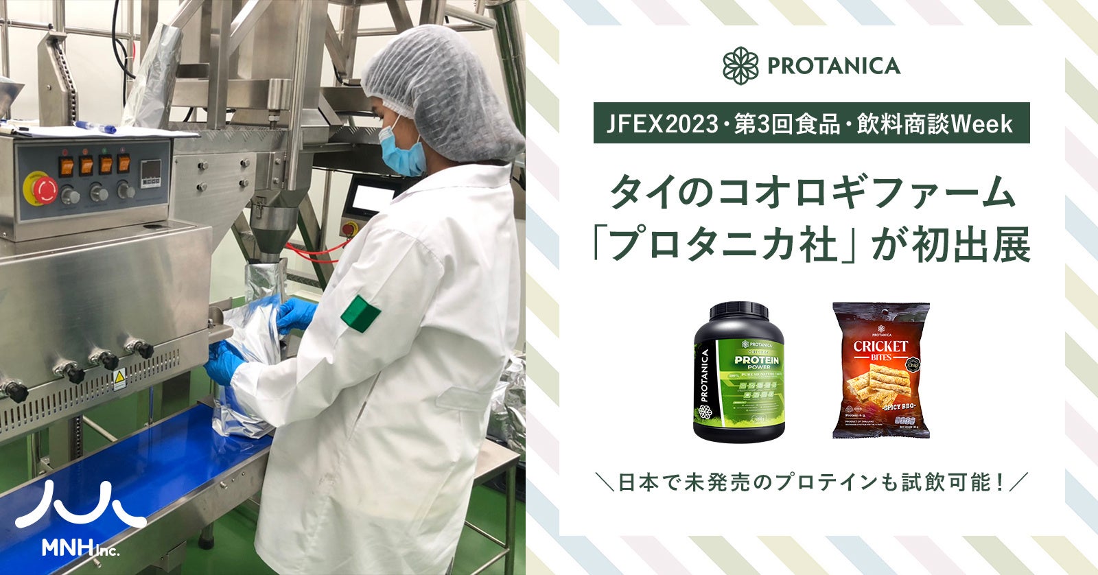 MNHでは、これまで世界各国のトップメーカーのコオロギを使用して商品開発を行ってきましたが、独自の養殖ノウハウを持ったプロタニカ社のコオロギの美味しさは特別です。ブースでは、プロタニカ製の商品を使用した「未来コオロギシリーズ」のほかに、プロタニカ社のオリジナル商品であるスナックやプロテインもお試しいただけます。ご来場の際はぜひブースにお立ち寄りください。