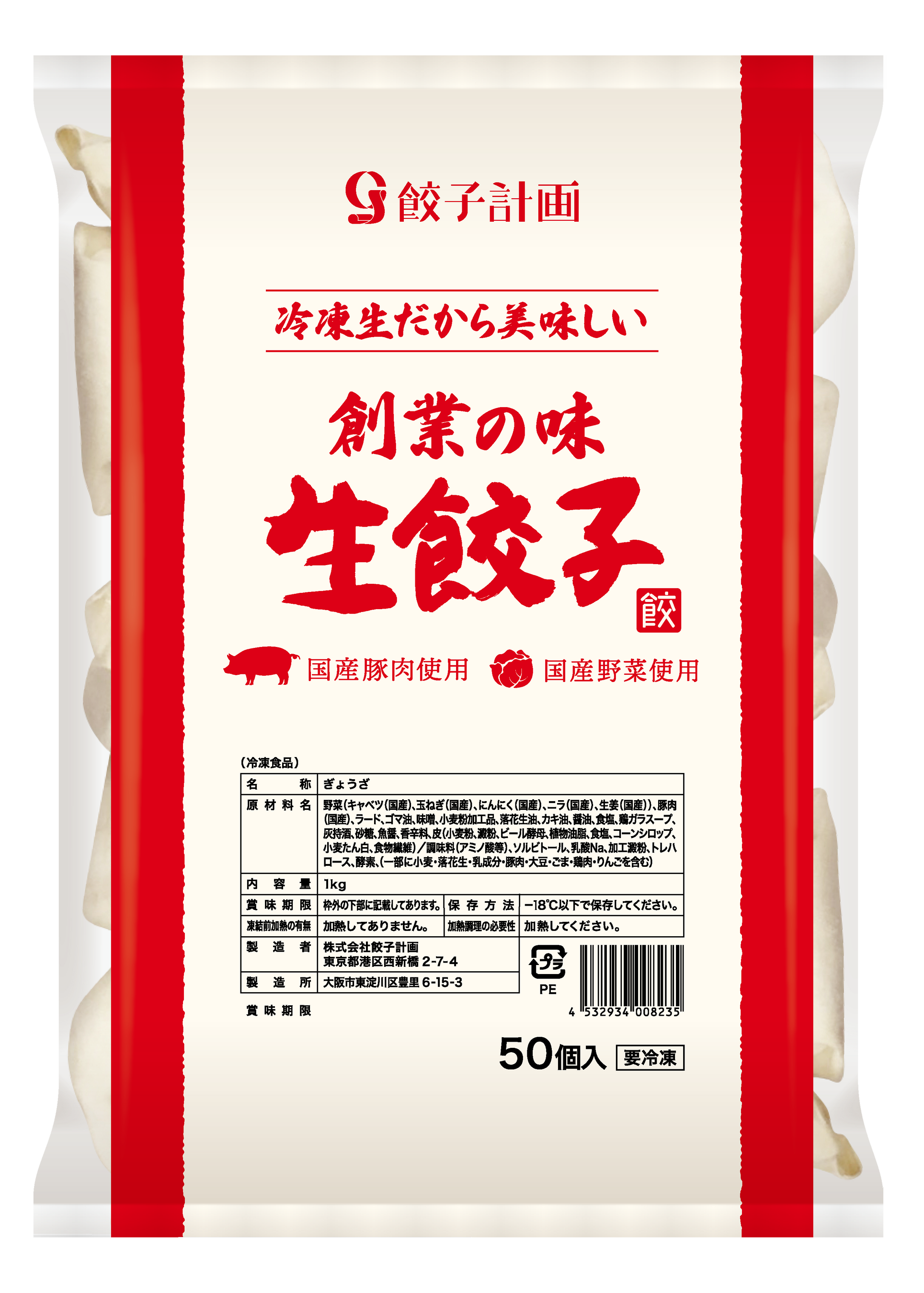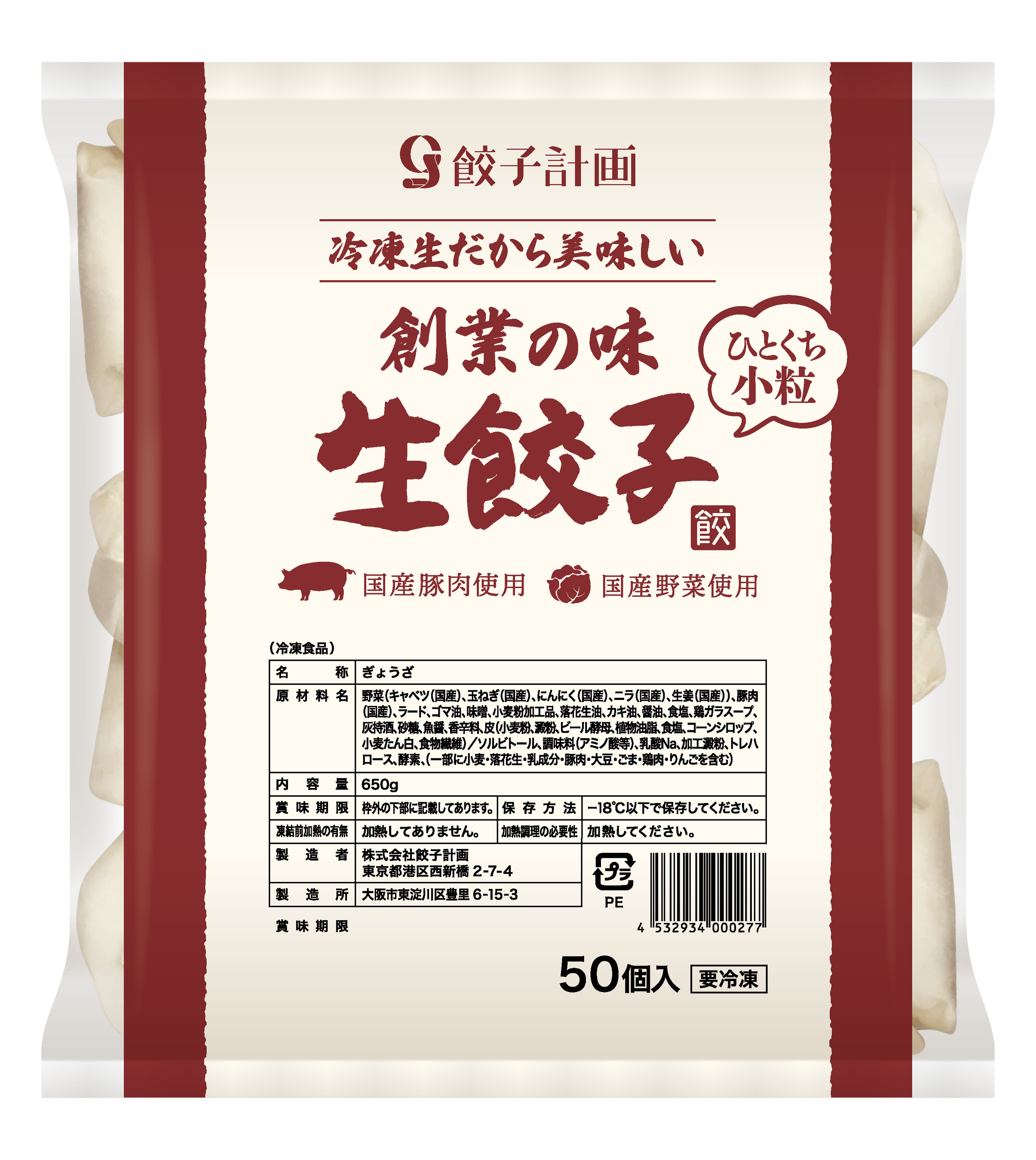 冷凍生餃子の販売や、全国のスーパーマーケットやドラッグストアで冷凍餃子を提供している株式会社餃子計画(代表取締役社長・林 暻逸)は、生だから美味しい「創業の味 生餃子 1kg」「創業の味 生餃子 ひとくち小粒 650g」を新発売します。