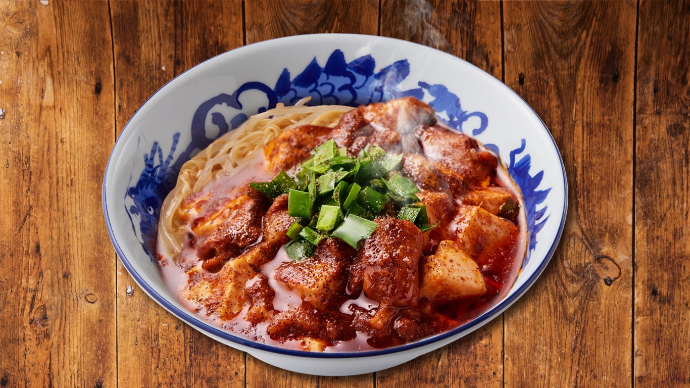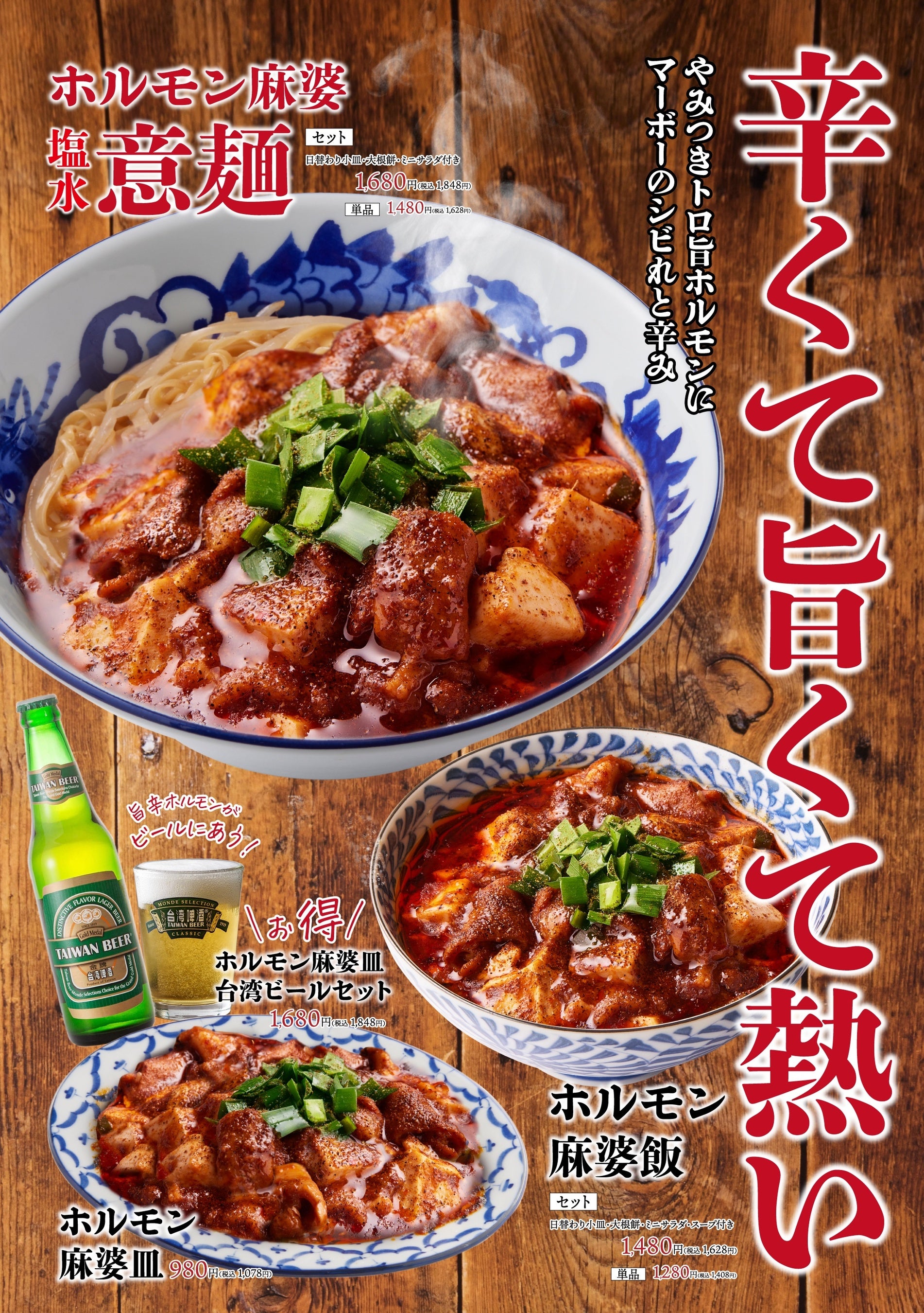 コクとうま味の塩水意麺に、濃厚なホルモン麻婆のピリ辛&しびれ。