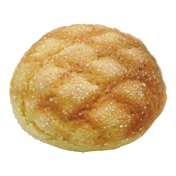 外はザクザク食感のビスケット生地が香ばしく、中はふんわりしっとり口どけの良い生地が美味しいメロンパンです。