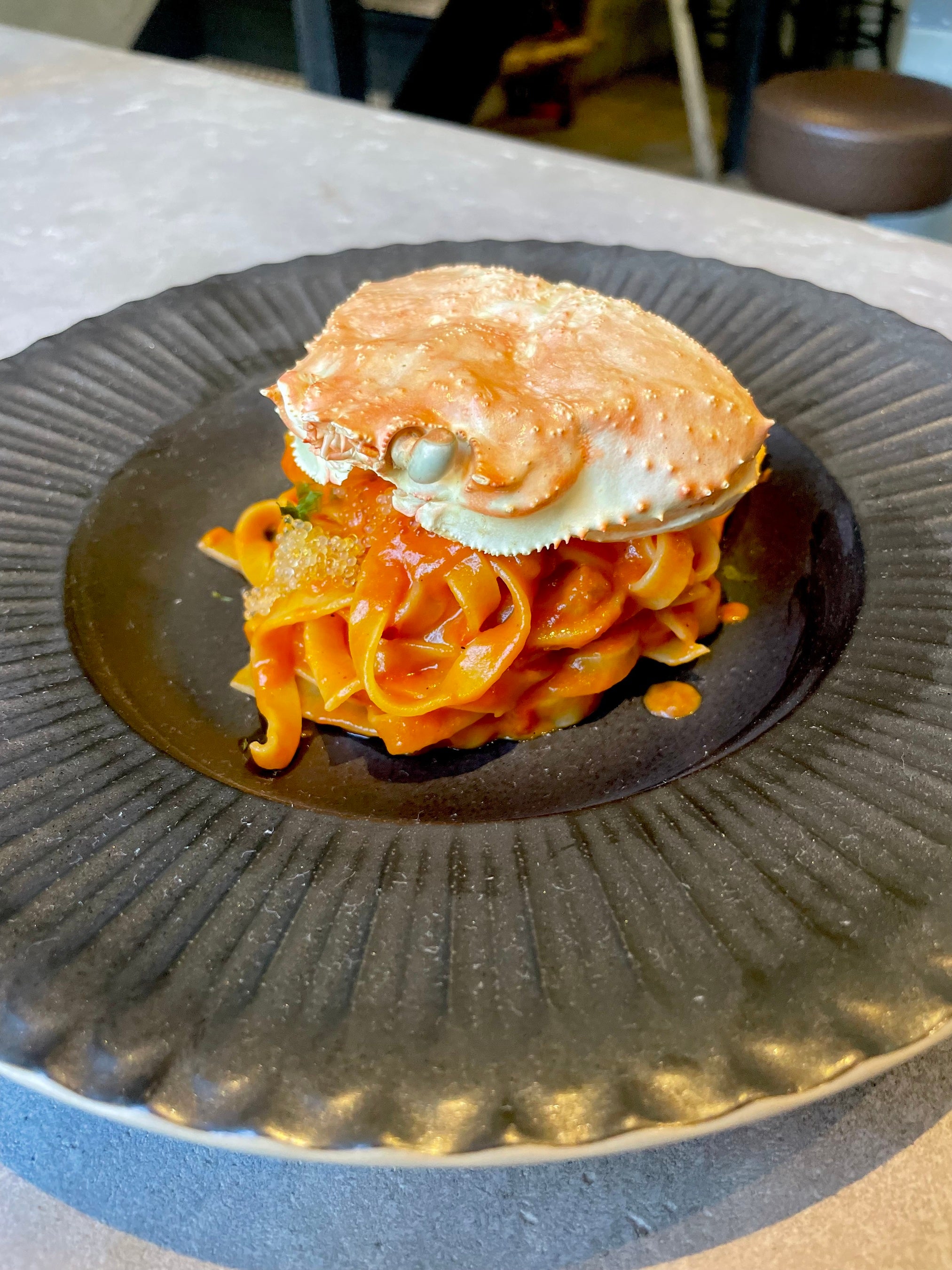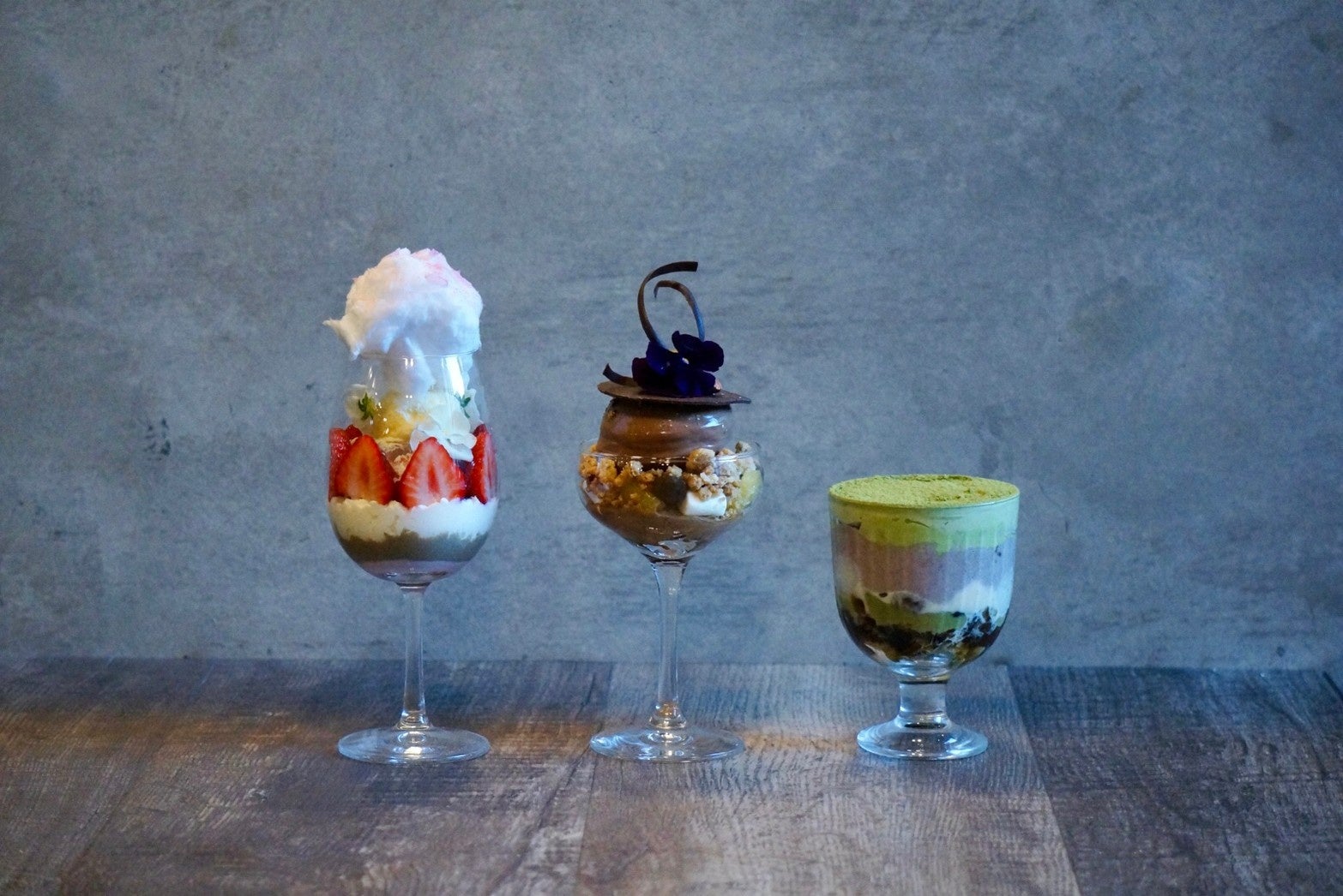 目玉商品のグラスワイン ¥450~、ボトルワイン¥2,000~やボトルシャンパン ¥5,000~、マグナムシャンパングラス¥990はもちろんのことながら、イタリアンやフレンチをベースとした西洋料理によるお昼のお得なランチセットは6種類から選べるパスタとサラダ・スープのセット(¥990)やケーキセット、夜もワインのススム肴や季節のメニュー(¥350~)はもちろん、デザートでは名物のパフェ(¥1080)や懐かしさを感じる事ができるプリンなどがずらりと並ぶ。これらのお料理を手掛けるのは、国内外の星付きレストラン出身のシェフとソムリエである。