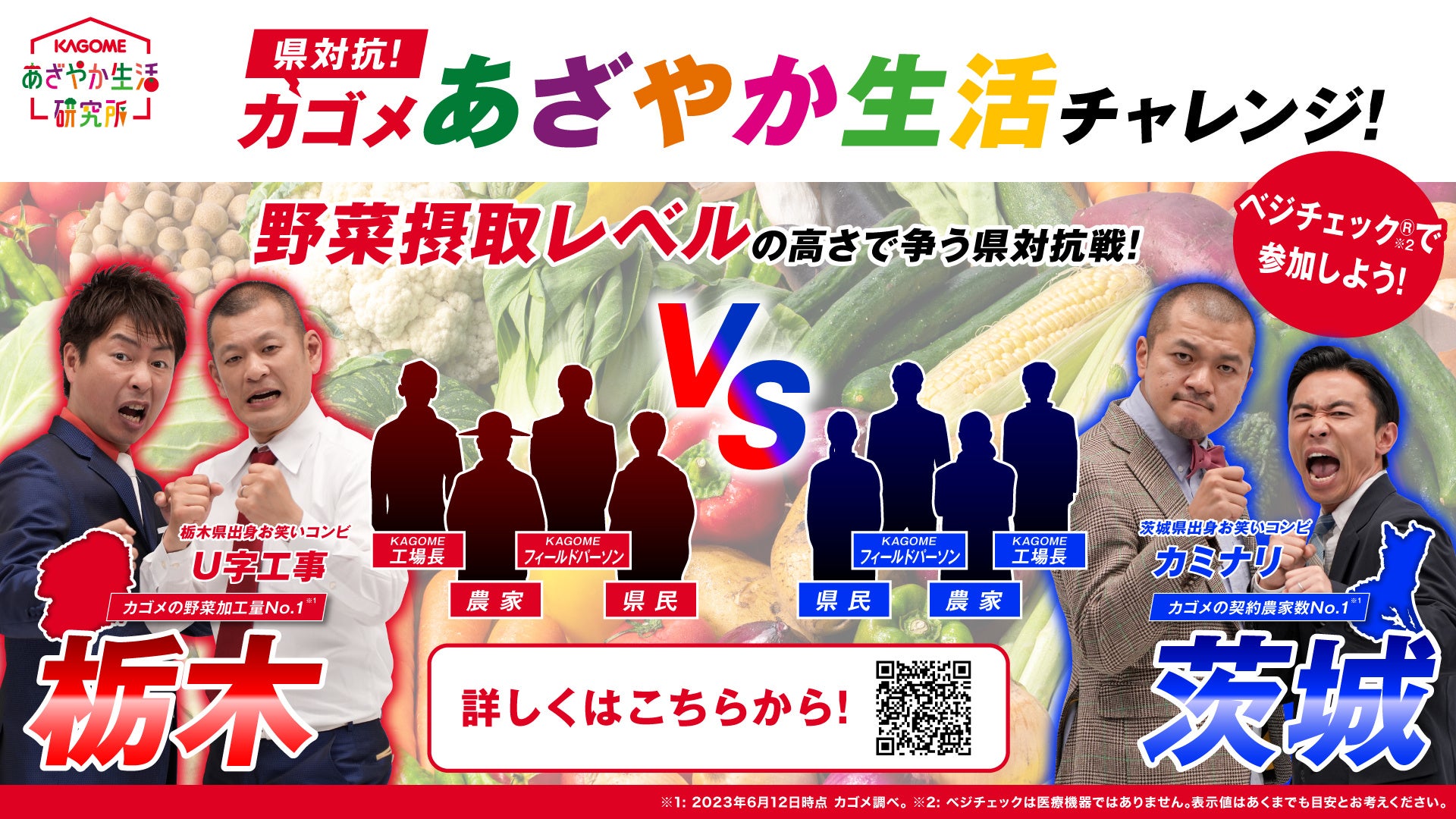 「あざやか生活研究所」は、彩り野菜のチカラで全国の皆様の生活をよりあざやかにすることを目指して2023年4月3日に開設いたしました。ココロとカラダが元気になり、今よりもさらに「あざやかな生活」を送っていただけるよう、楽しく、分かりやすく、野菜の情報をお届けしています。この度、全国に先駆け、カゴメの契約農家数No.1の茨城県(*1)、カゴメの野菜加工量No.1の栃木県(*2)とカゴメに縁のある2県の皆様からあざやかになっていただきたいという思いから、両県を代表するお笑い芸人のU字工事さんとカミナリさんをアンバサダーに起用しました。