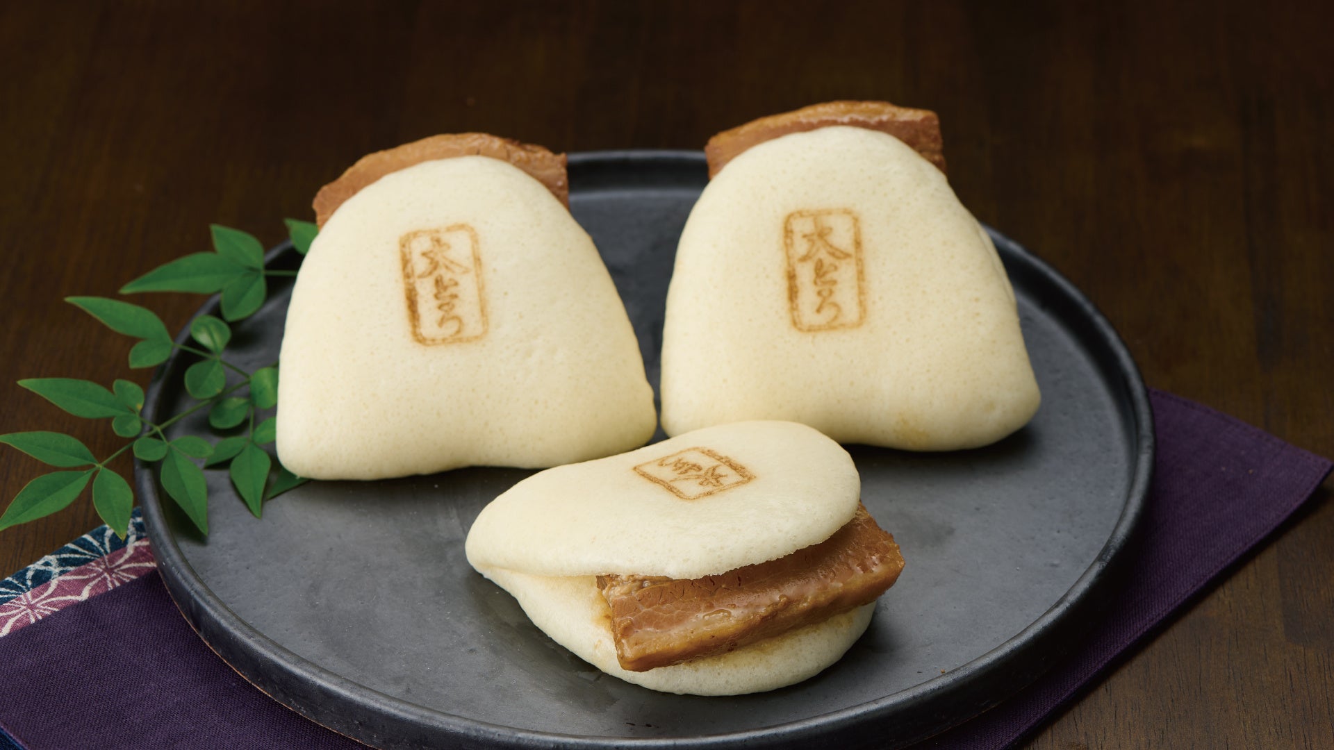継ぎ足しの秘伝のタレで3日間かけて作ったとろとろの角煮を、ふわふわの生地ではさみ込んだ、長崎グルメ。
