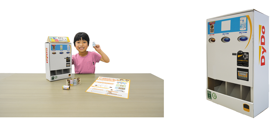 この自動販売機を活用して社会に貢献したいという想いから、2015年度より同キットを全国の子どもたちに無償で提供。「自動販売機の構造が理解できる」「買いもの学習に活用できる」と学習ツールとしても大変ご好評いただいております。