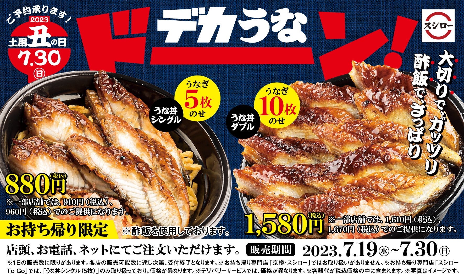 スシローの「うな丼」は、土用の丑の日に合わせて販売している夏の定番商品で、毎年多くのお客さまからご好評をいただいております。今年はうなぎの量を2種類ご用意し、5枚のったシングル、10枚のったダブルからお好きな方をお選びいただけます。