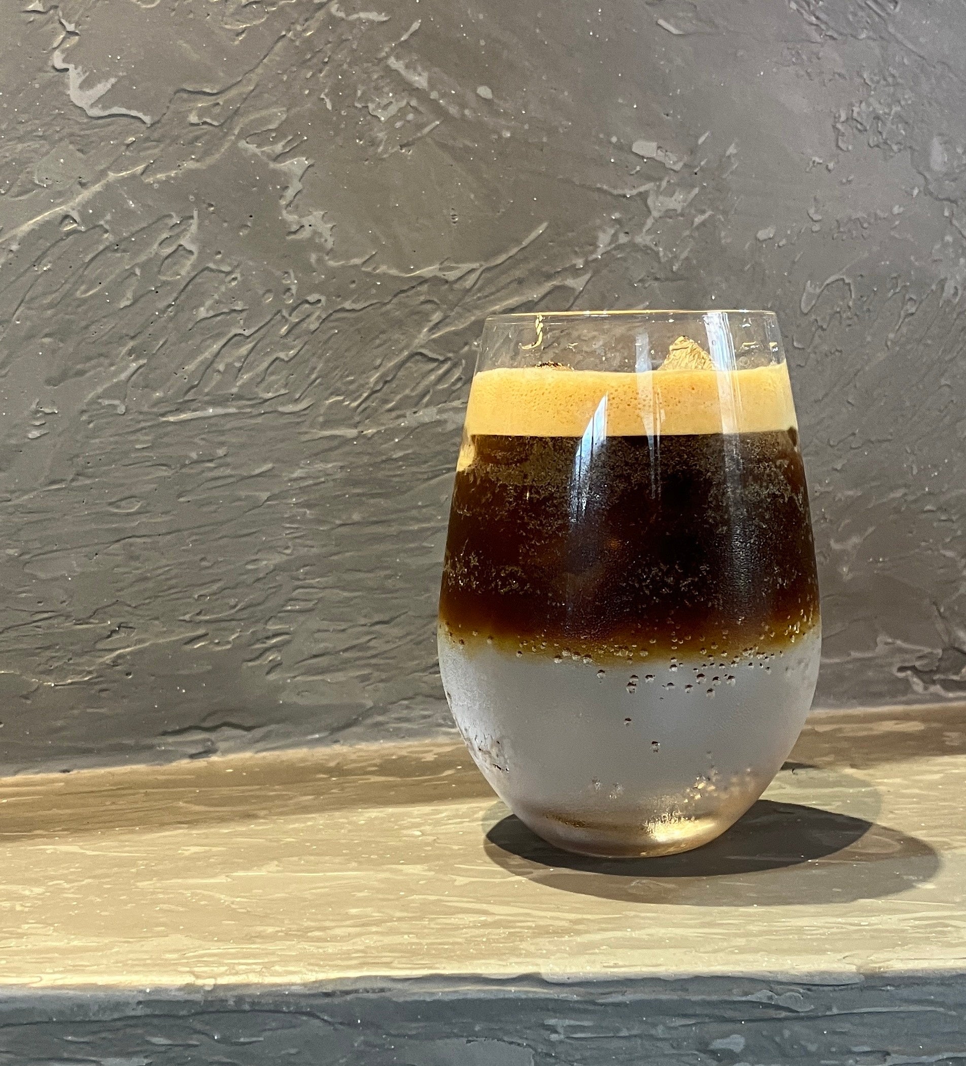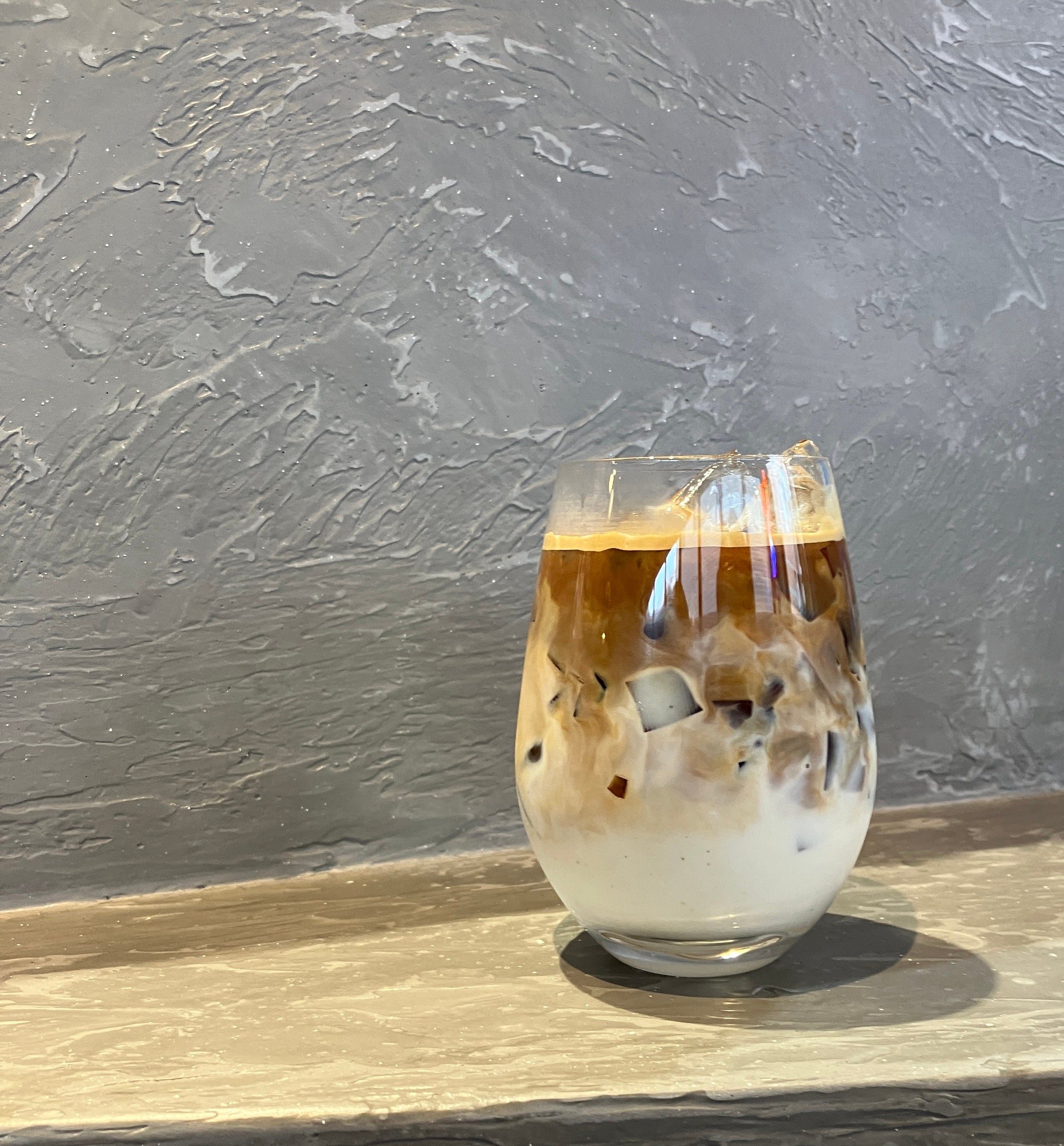 エスプレッソを氷と一緒にスチーム。くちあたりが軽く、まろやかでクリーミーな仕上がりとなる飲み物です。つくったあとしばらく置くと、上品なブラウンのグラデーションになるのも特徴。