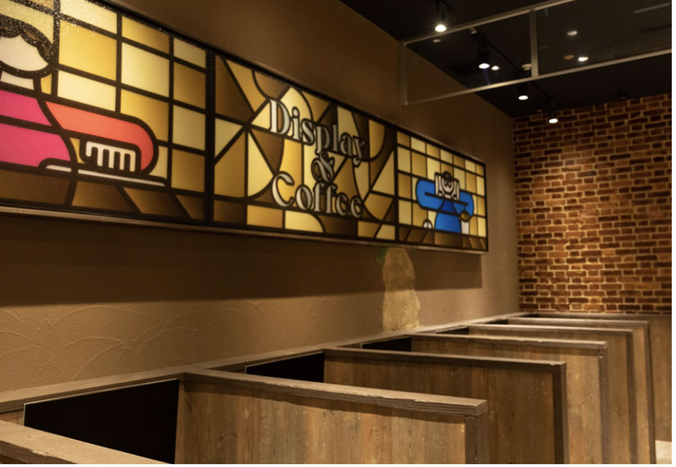 従来のUNI COFFEE ROASTERYからデザインやコンセプトを一新し、ステンドグラスを模した設えほか、昔ながらの純喫茶を思わせる空間に、周辺を活動エリアとするビジネスパーソンやクリエイターの方にとって居心地の良い空間をご提供するため、ディスプレイモニタや各種ケーブル類を設置しています。
