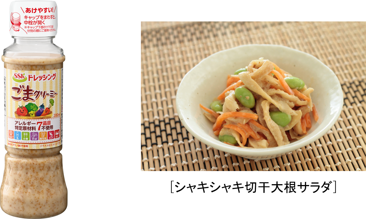 「SSK アレルギー特定原材料7品目不使用ごまクリーミードレッシング‐調味料(アミノ酸)不使用‐」を含む「SSK アレルギー特定原材料7品目不使用シリーズ」は、2015年より販売を開始し、学校給食等でご使用いただいております。食物アレルギーでお悩みの方だけでなく、みんなが同じ食卓で同じメニューを楽しむことができます。