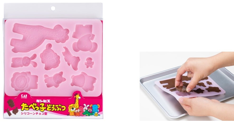 たべっ子どうぶつの9種類のキャラクターのチョコレートを一度に作れるシリコーン型です。チョコレート以外にも、グミや氷作りにも使えます。