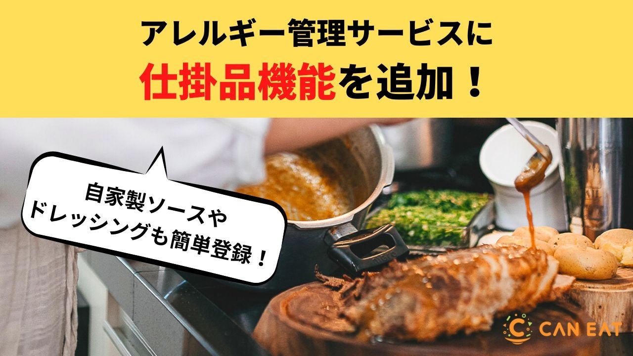 この度、ますます使いやすく効率的なサービスへと進化させるため、利用者のみなさまから特にご要望の多かった『仕掛品機能』を追加しました。お店で仕込むオリジナルのソースやドレッシング、出汁といった仕掛品を登録することで、アレルギー情報をよりわかりやすく管理できるため、材料変更に伴うアレルゲン情報の変更作業やお客様からの問い合わせ対応業務を今まで以上に効率化できます。