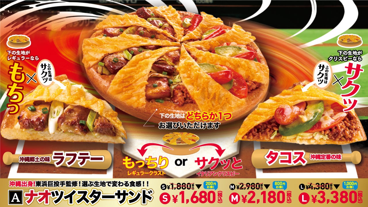 また、ナオツイスターサンド以外に「スーパーアイダホ」「トゥーマッチミート」「シーフードデラックス」の人気ピザ3種もお得なキャンペーン割引価格最大1000円割引で登場。