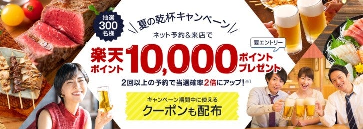 内容 :抽選で300名様に「楽天ポイント」10,000ポイントを進呈。2回以上予約すると当選確率が2倍にアップ。