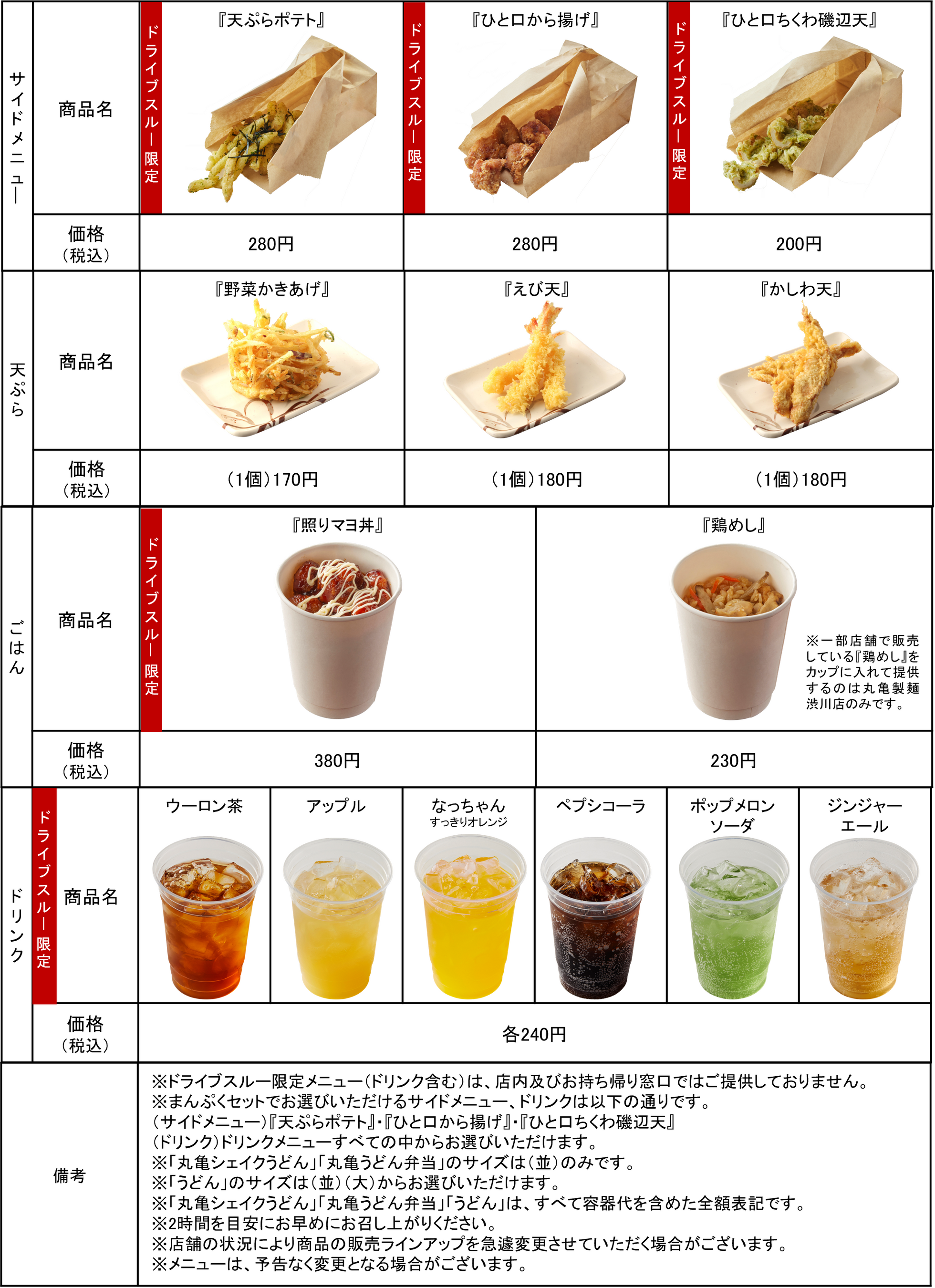 【商品概要】※ドライブスルーの販売商品ラインアップ