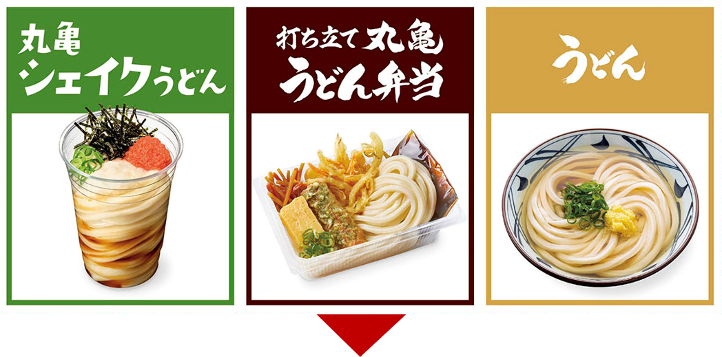 「丸亀シェイクうどん」は、カップを振るだけで簡単にうどんと具材、だしが絡み、いつでもどこでも手軽においしく打ち立てのうどんをお楽しみいただける商品です。
