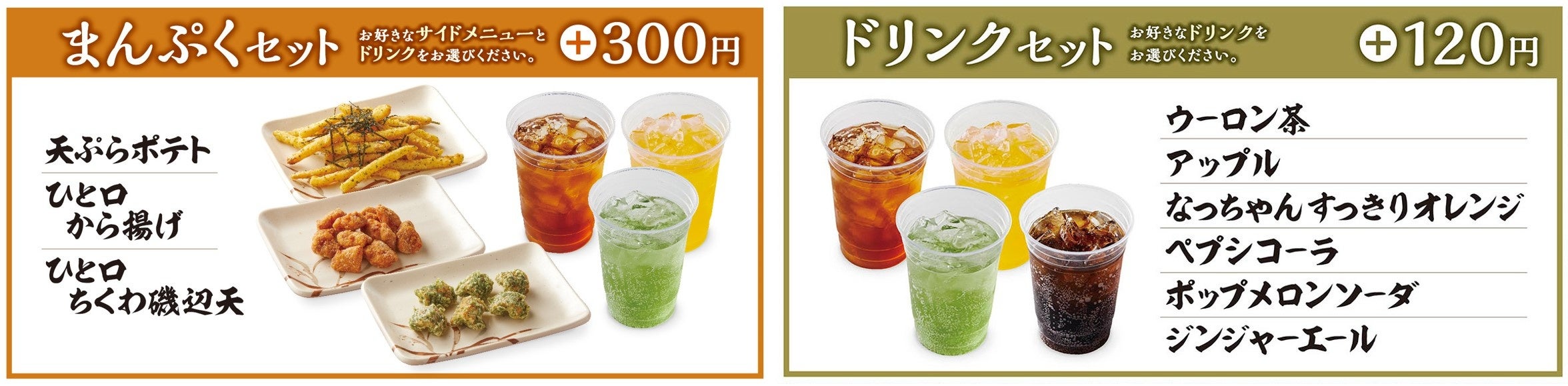 ※まんぷくセットは、お好きなうどんに+300円でサイドメニューとドリンクをお選びいただけます。