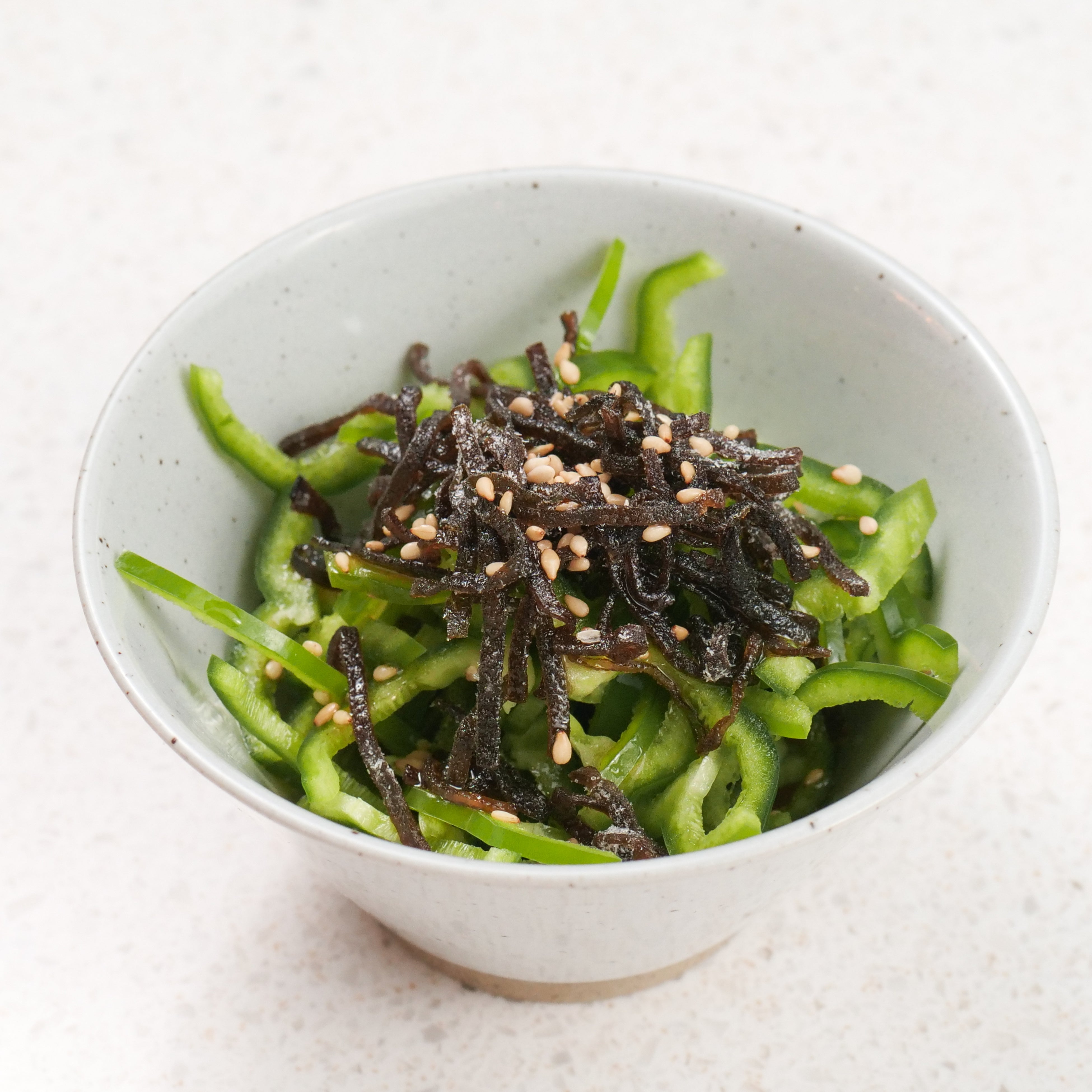 塩昆布と和えた細切りピーマン。シンプルなのに何故か止まらない究極のアテ。