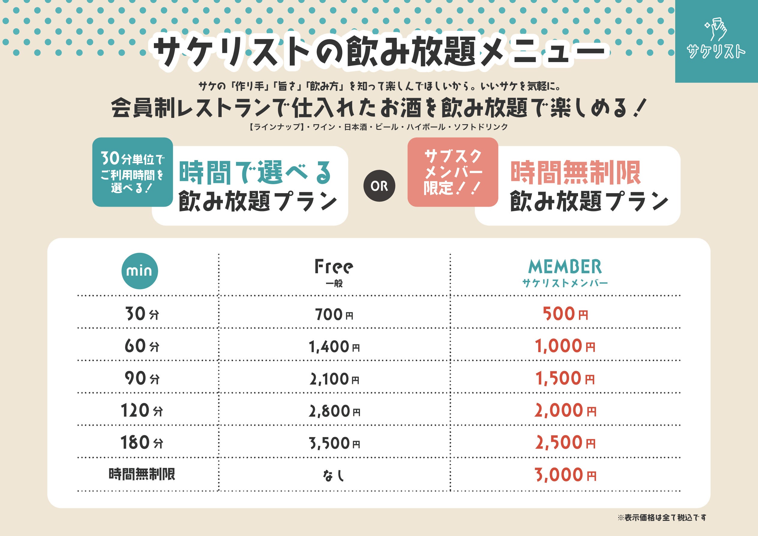 『サケリストメンバー』になると時間無制限の飲み放題が選択可能に!?