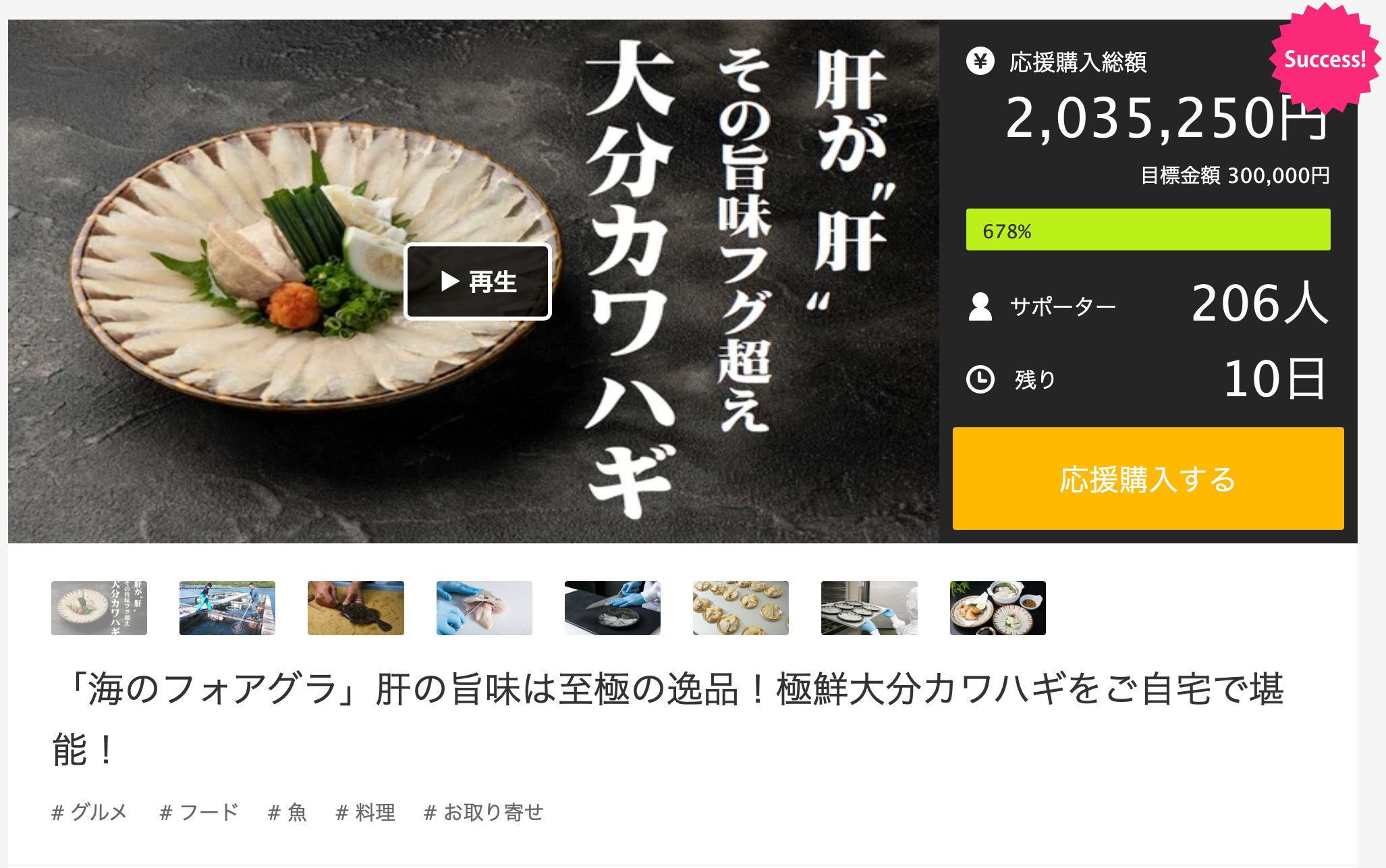 ・プロジェクト名:「海のフォアグラ」肝の旨味は至極の逸品!極鮮大分カワハギをご自宅で堪能!