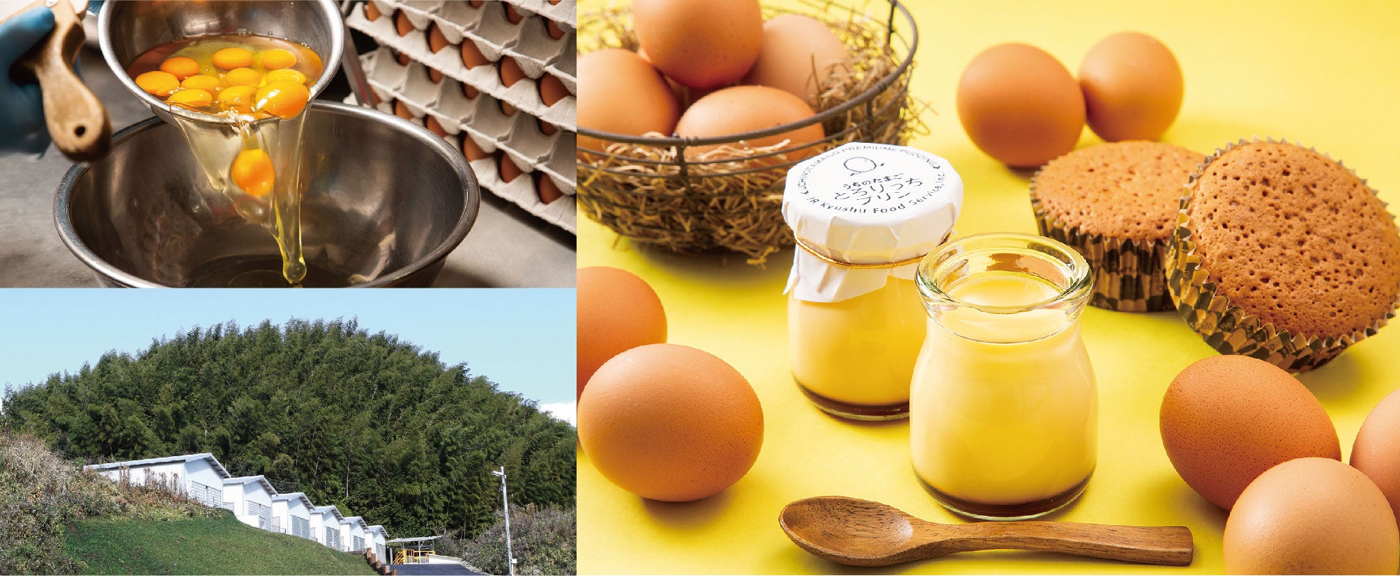 “うちのたまご”とは、福岡県飯塚市の緑豊かな里山にある「内野(うちの)」養鶏場で、澄んだ空気の中のびのびと育った健康な親どりから生まれた、健康でおいしい「たまご」です。うす黄色の黄身は、天然の地下水とトウモロコシなどの原料をベースにした自然の餌の色が表れている、加工していない本来の自然な色。安心してお召し上がりください。