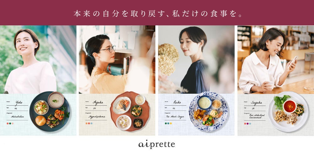 aipretteは、性別、年齢、身長、体重、活動量、食習慣、自覚症状等のデータから、一人ひとりに最適なお食事をレコメンドするサービスです。朝・昼・夜の置き換えるタイミングに合った食事を提案します。