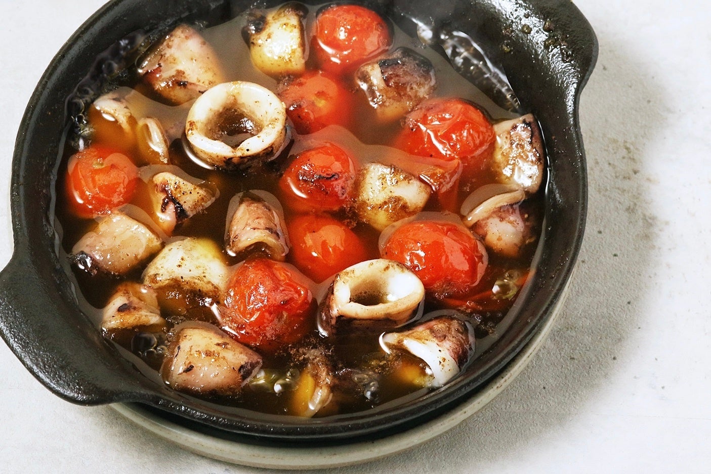 ・ヤリイカとチェリートマトのアヒージョ 980円(税込)