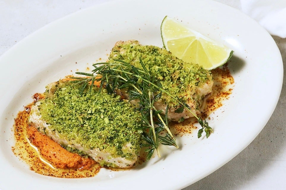 ・カジキマグロの香草パン粉焼き 黄パプリカコンフィとロメスコソース 980円(税込)