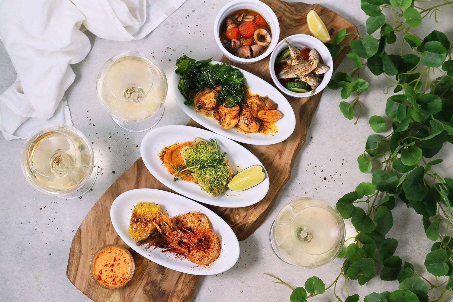 この季節に美味しい食材をふんだんに使用して、スパークリングワインや冷たい白ワインと相性抜群の爽やかなラインナップ。