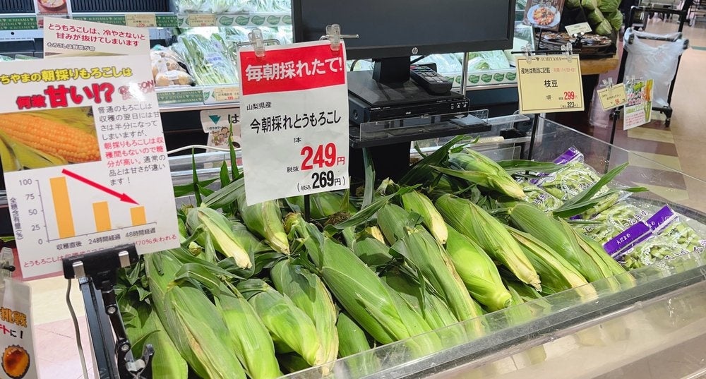 いちやまマートでは、毎年6~9月頃の期間に「朝採れとうもろこし」を販売しています。