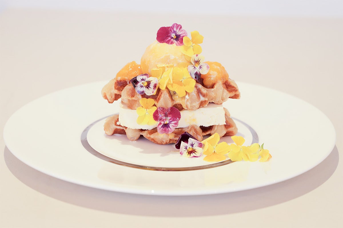 ちょっと大人のスイーツリッチクロッフルにはエディブルフラワーでラプンツェルを表現した魅惑のスイーツが誕生