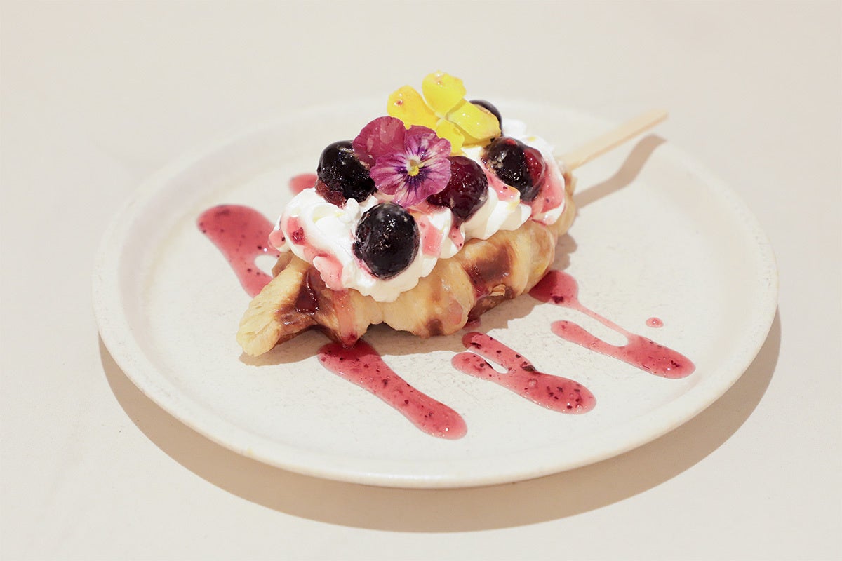 ブルーベリーフルーツとお花で看板メニュークロッフルを彩りました。