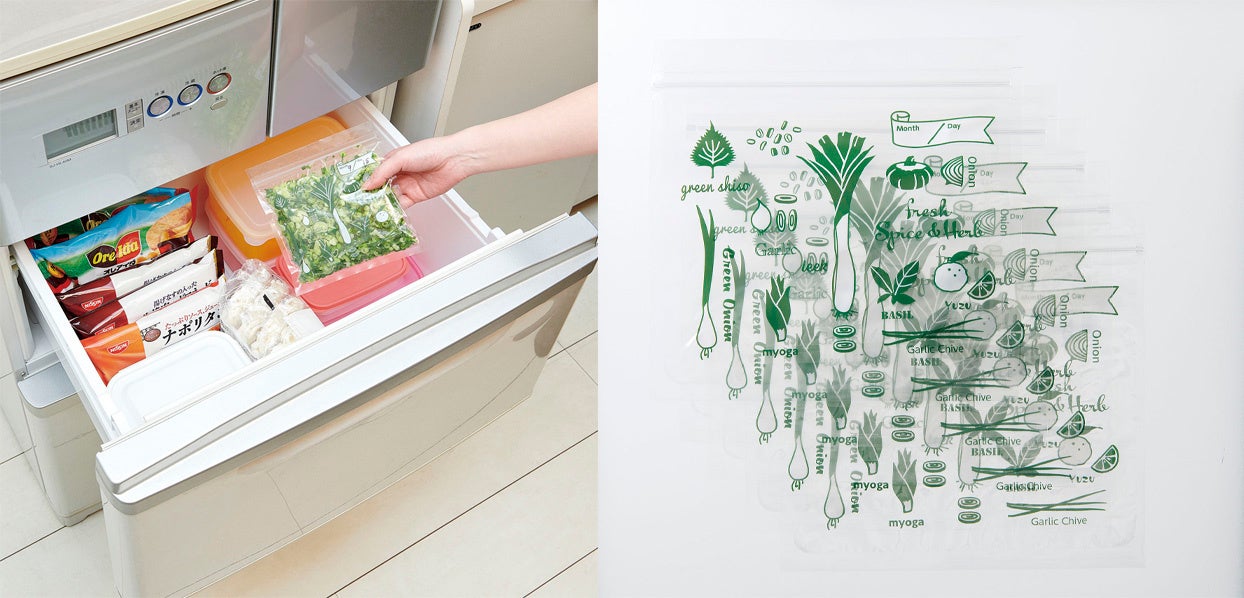 そんなときには迷わず「薬味のおうち 冷蔵冷凍袋 5枚組」。