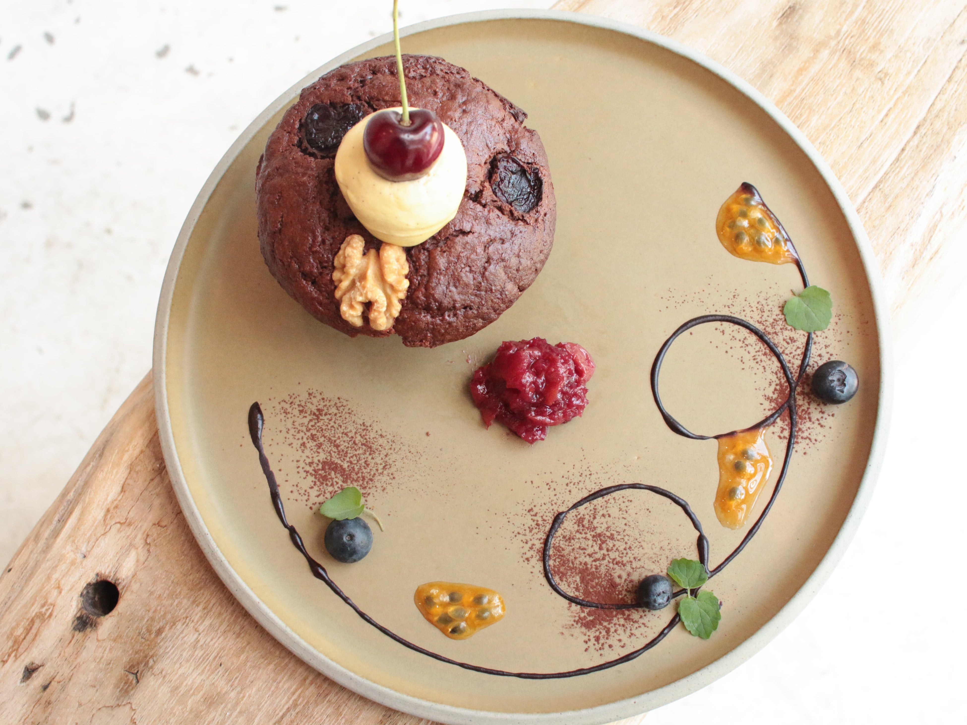 アメリカンチェリーとカスタード風クリームのヴィーガンマフィン ¥825(EAT IN)