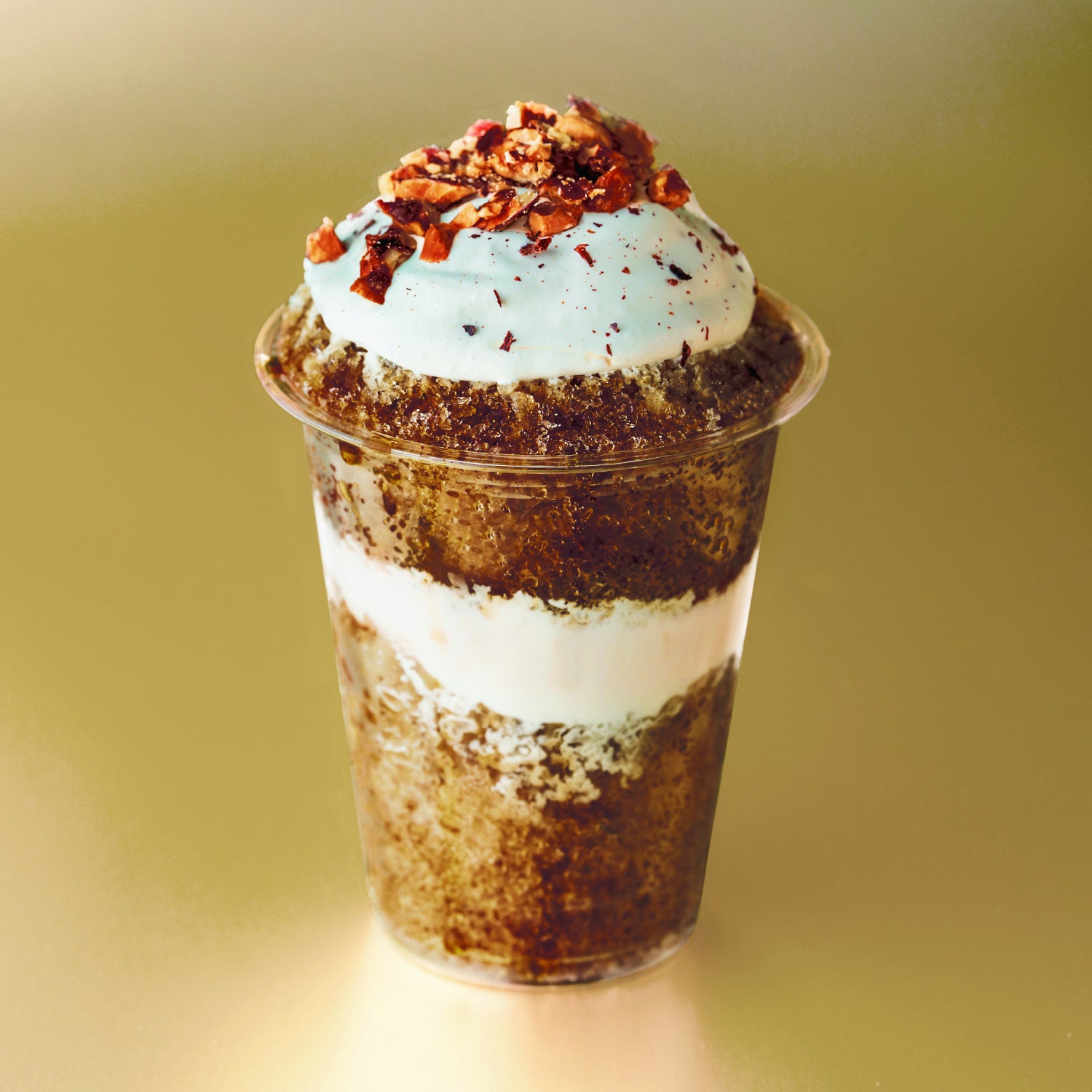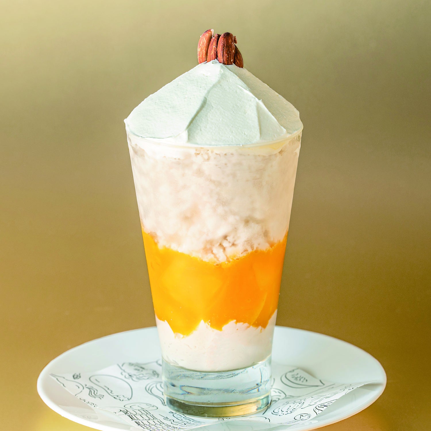 こだわりのコーヒーで作ったかき氷の深い苦みが、キャラメル風味のミルククリームの優しい甘さと絶妙にマッチ。コーヒー豆の生産過程でほとんど捨てられてしまう果実“コーヒーチェリー”と、パッションフルーツで仕上げたソースの甘酸っぱさがアクセントとなっています。コーヒーのおいしさを余すことなく丸ごと引き出した味わいをお楽しみください。