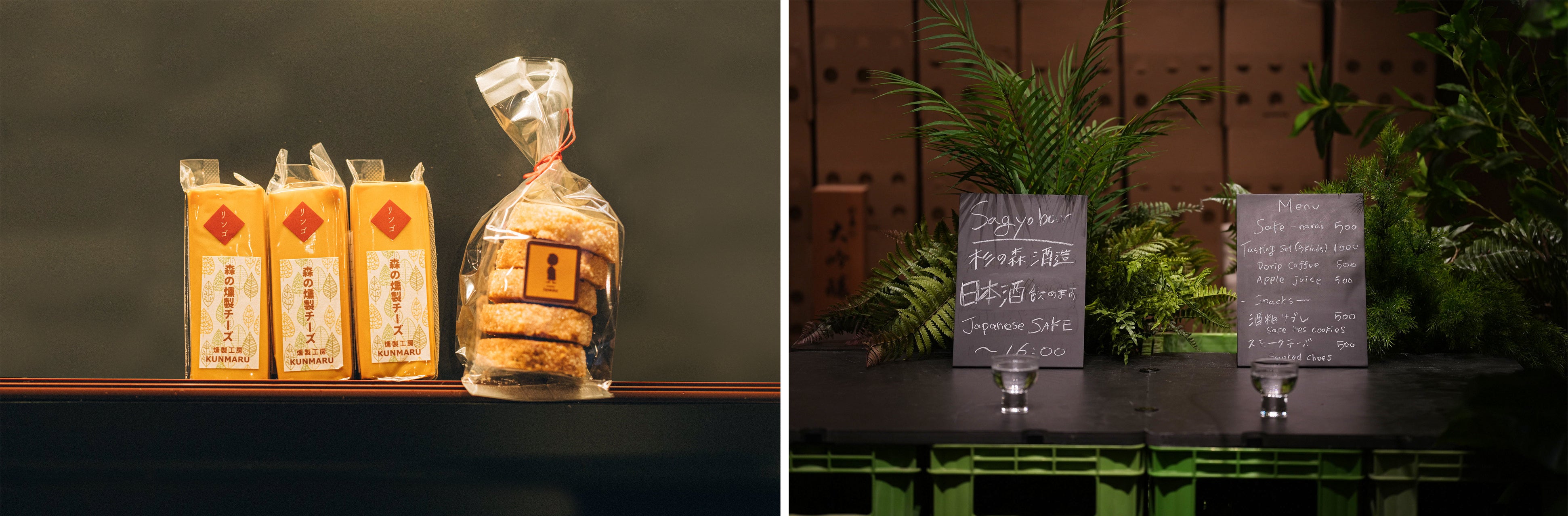 提供するメニューの一例として、日本酒 naraiの3種類(美山錦、金紋錦、山恵錦)の飲み比べセットや、一般販売は行っていないここでしか飲むことのできないnarai、冬の時期にはHot narai(熱燗)も提供予定です。また、おつまみには地元長野で作って頂いた当蔵の酒粕を使用した焼き菓子(studio sambo: https://studio-sambo.com/)や、燻製チーズ(燻製工房KUNMARU: https://kunmaru6.stores.jp/)などを予定しております。