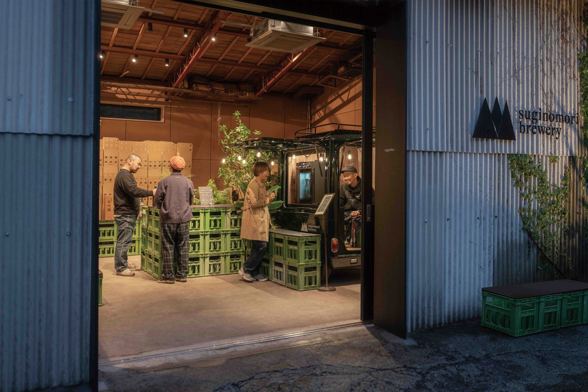また、ここはP箱のレイアウトを変えることで角打ちスペースとしてもご利用いただける場にもなっています。屋内に日本酒の移動販売車「suginomori wagon」を収容し、naraiをはじめ、ここでしか楽しむことのできない限定メニューや、オリジナルグッズなども販売する予定です。