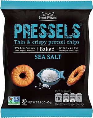 「NOT JUST A PRETZEL!(ただのプレッツェルじゃない!)」をキャッチコピーに掲げるドリームプレッツェルのPRESSELS™(プレッセル)は、動物性原料・白砂糖・着色料不使用のヴィーガンスナックです。