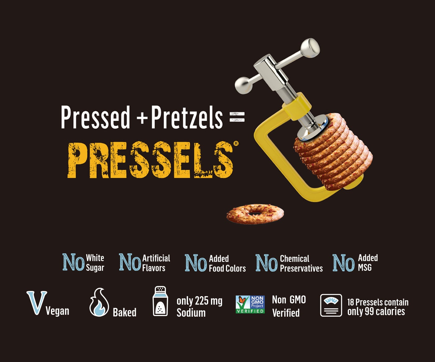 Pressed(プレスされた)+Pretzels(プレッツェル)だからPRESSELS™(プレッセル)。