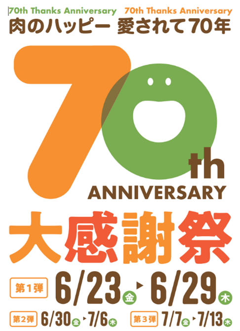 第1弾(6月23日~)から第3弾(~7月13日まで)の全21日間の限定開催です。期間中は70周年をお祝いして特別価格での目玉商品を多数ご用意しておりますので、是非皆様のご来店を心よりお待ちしております。