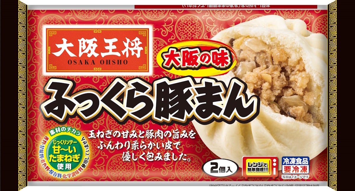 2023年、大阪王将がご紹介する豚まんは、玉ねぎと豚肉が詰まった大阪グルメの味わい。高級感漂うふっくらと柔らかい皮。優しく甘い、口どけのよい食感です。