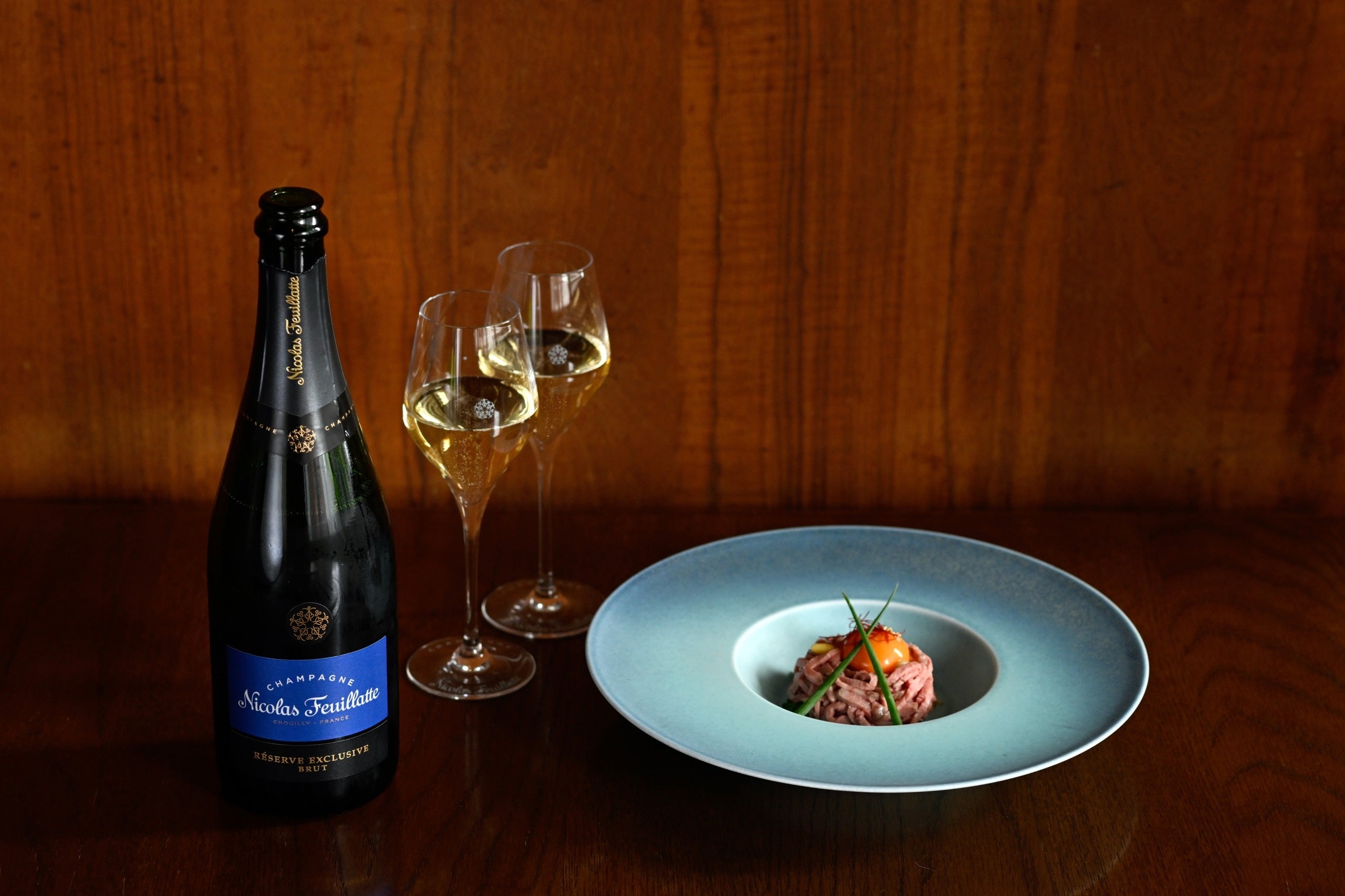 参加レストランはフレンチから和食、焼肉まで全7店舗。フラッグシップシャンパン“レゼルヴ エクスクルーシヴ ブリュット”に合わせたペアリングメニューを各レストランでお楽しみいただけます。