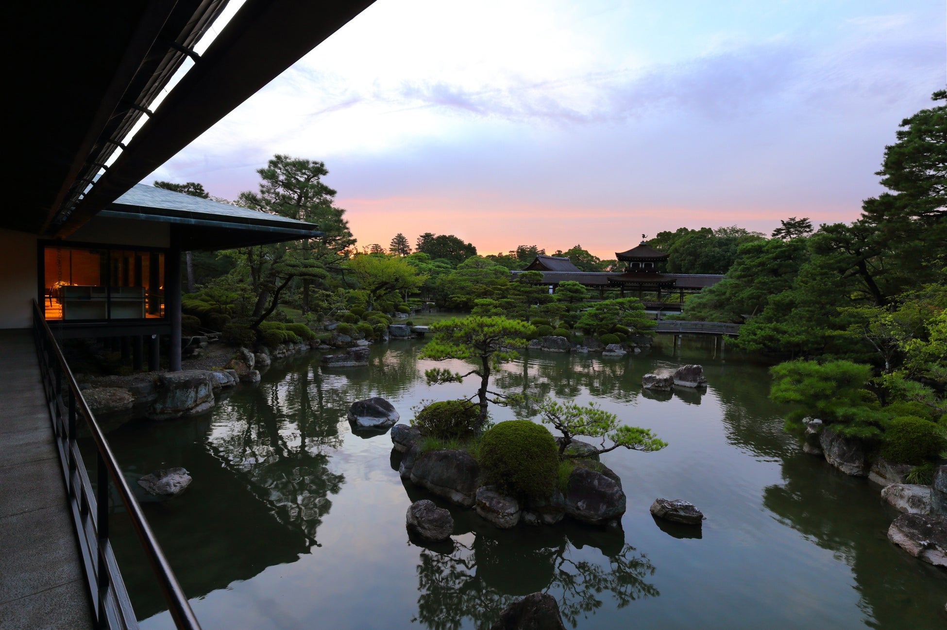 特長3、夕景に美しく映える「神苑」と平安神宮