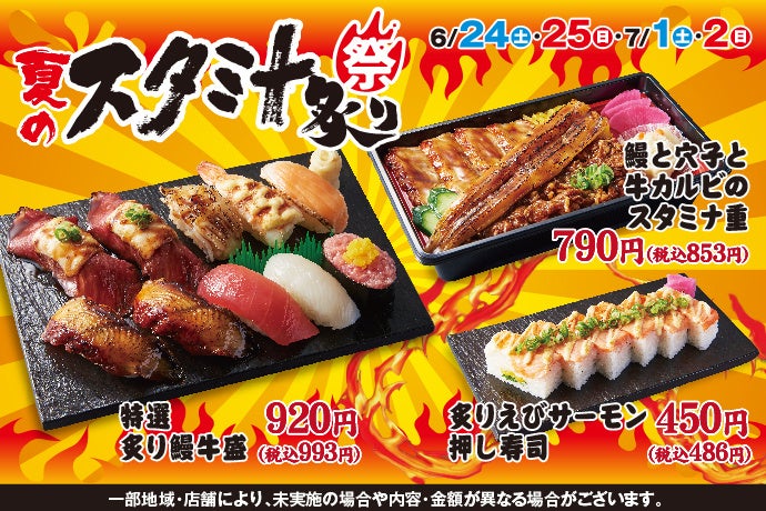 「スタミナ」と言えば!栄養満点で旨味たっぷりの『鰻』と『牛肉』!!『鰻』と『牛肉』をメインに、大人気の「炙り寿司」を加えることで最強のラインナップが揃いました!