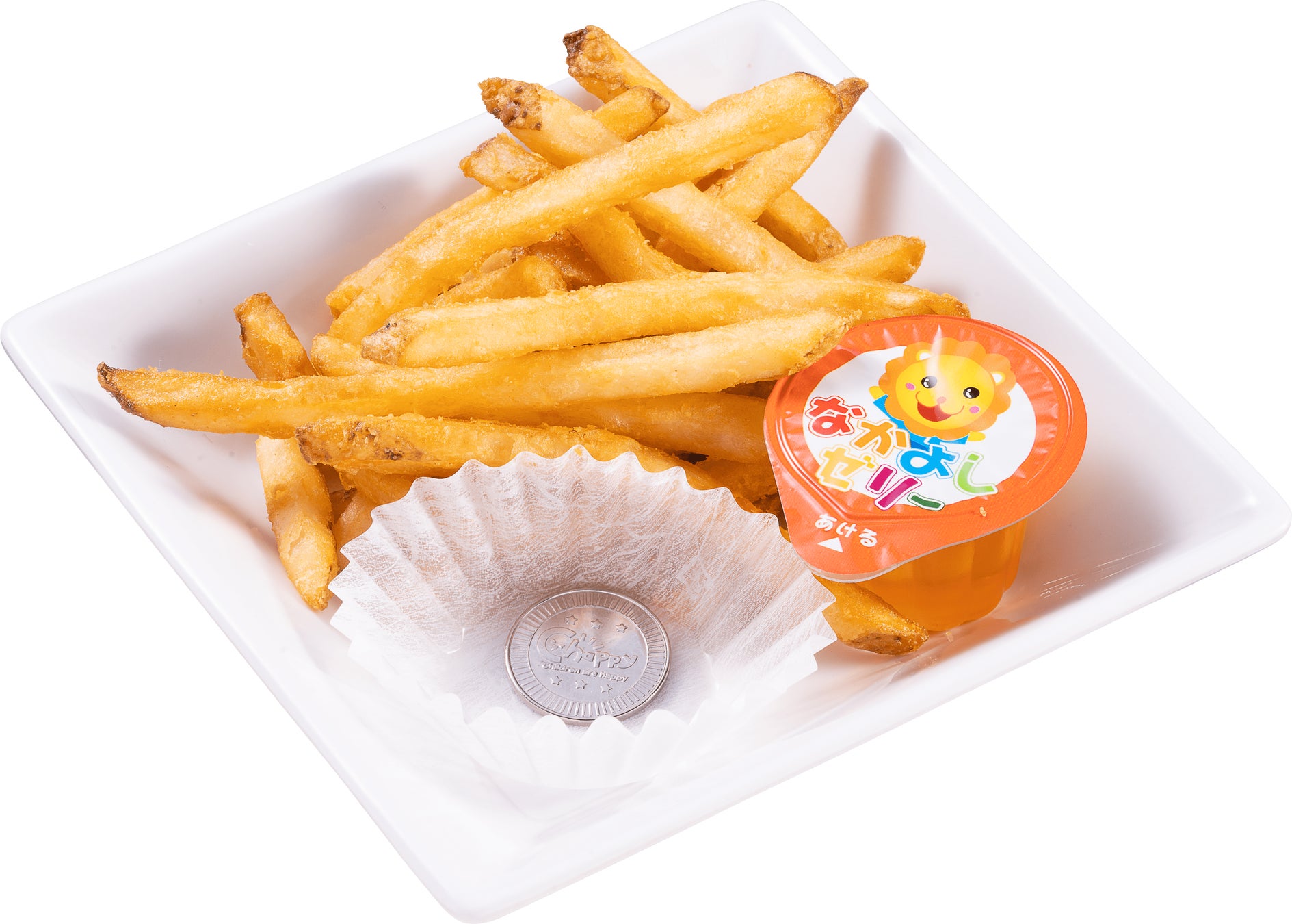 「プチガチャ」を回せる「プチガチャコイン」は、店内飲食メニュー『おこさまにぎりセット』『おこさまカレーセット』『おこさまプレート』、そして6月21日より登場した『おこさまポテトプレート』、それぞれに1枚付いています。プチガチャコイン単体(165円税込)の販売もしております。