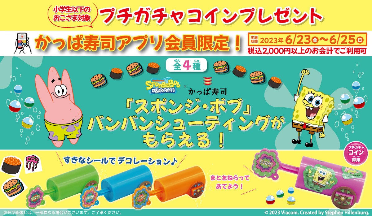 ぜひ、この機会にかっぱ寿司でご家族でのお食事をお楽しみいただき、『スポンジ・ボブ』のおもちゃ「バンバンシューティング」を手に入れてください。