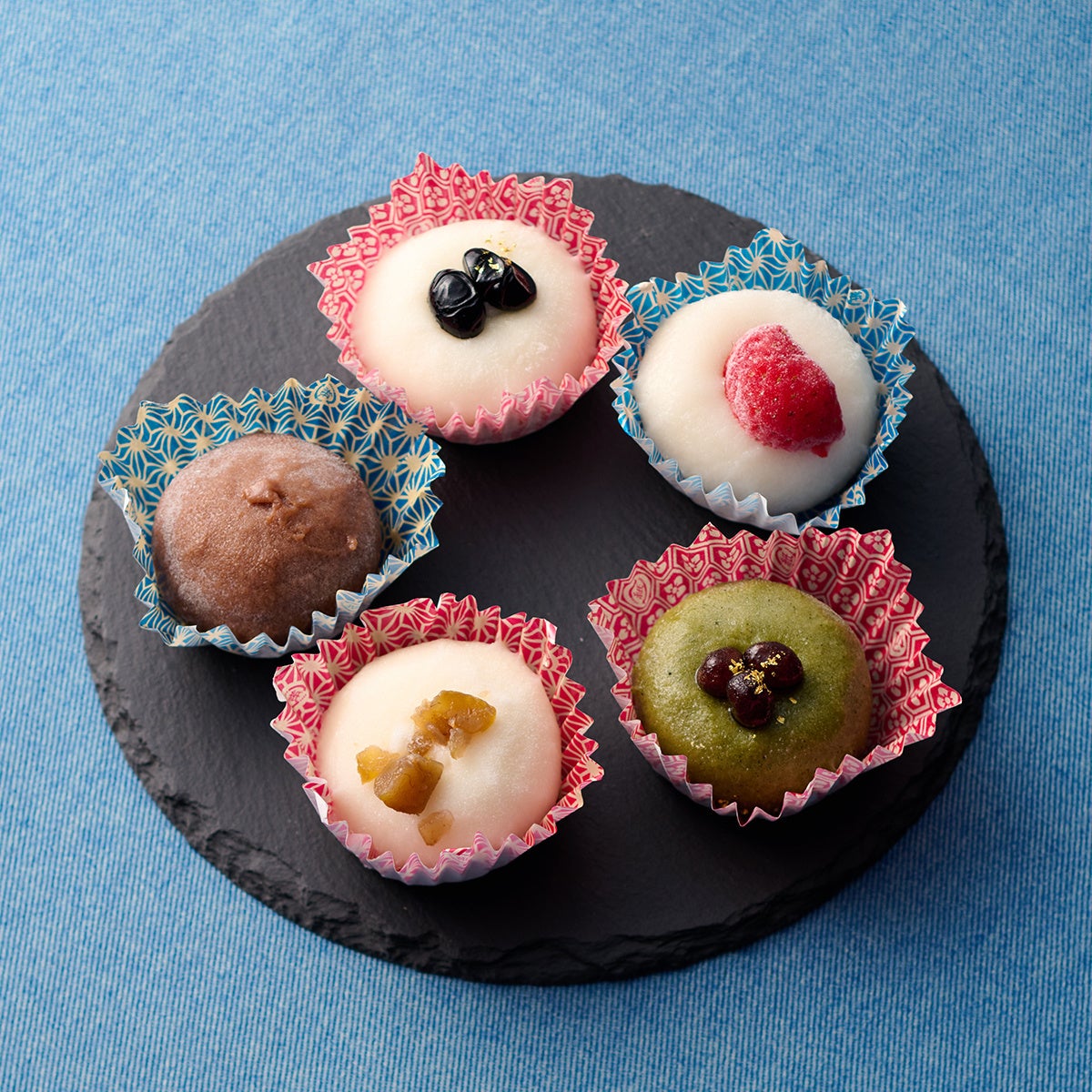 井村屋のヒット商品「やわもち」に使用している冷凍下でも柔らかい「おもち」で、高質なアイスクリームを包みました。まさしく和菓子のようなアイスクリームです。